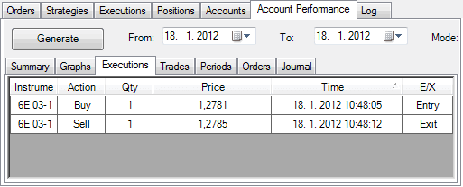 Trh nakoniec jednu bezpečnú príležitosť na nákup pri malom riziku poskytol a exekuovali sme obchod podľa zásad nášho obchodného systému EURUSD @ 1,2781 long o 10:49.Obchod sa vyvíjal absolútne skvele až na to, že zo 6-tich kontraktov na limitnej objednávke trh vyplnil len 1 kontrakt a zvyšných 5 kontraktov mi do trhu nenabralo a tak celý zisk bol dosiahnutý iba na tom 1 vyplnenom kontrakte.